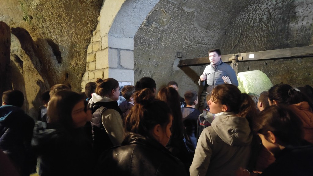L’après-midi, pendant que les 5ème B travaillaient sur leur roman avec l’ auteur Véronique Delamare Bélégo, les 5éme C et 5éme A sont partis en car pour visiter un village troglodyte. Les habitants logeaient dans des grottes creusées dans une roche appelée falun. Le guide nous a expliqué qu’il n’y avait à l’intérieur aucune humidité et pas d’infiltration grâce à cette roche et que la température restait constante toute l’année entre 12 et 15 degré.